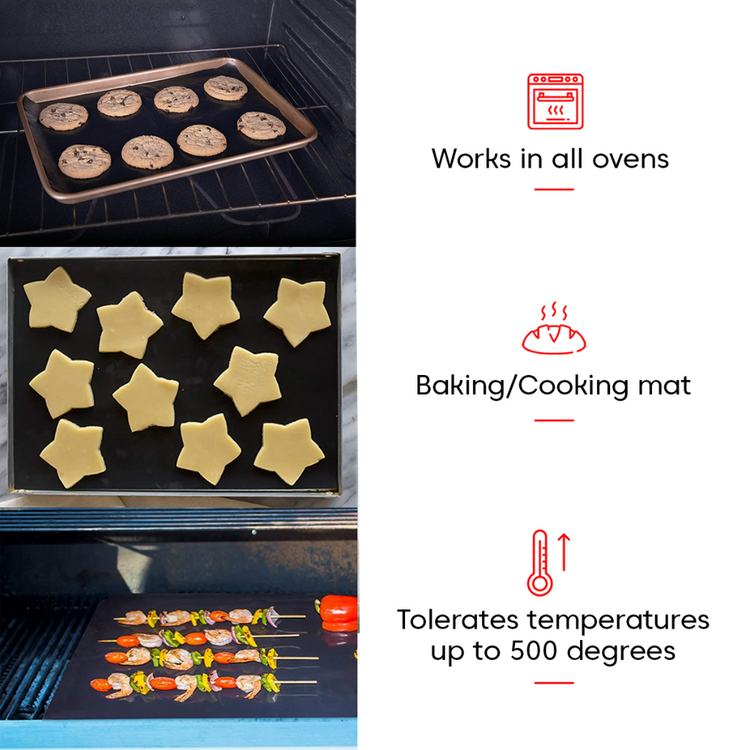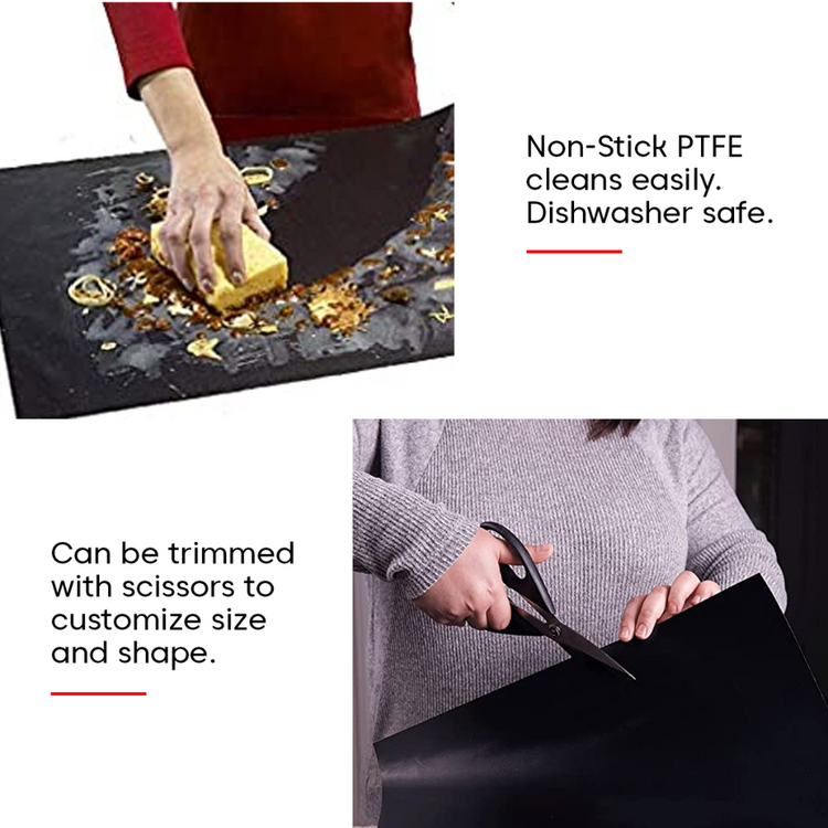 - FITS YOUR OVEN PERFECTLY: Extra heavy-duty oven mat fits most standard-size ovens & also household scissors. Each one measures 16.5"x 23" inches. Our oven mat protector easily tolerates temperatures up to 500 degrees.