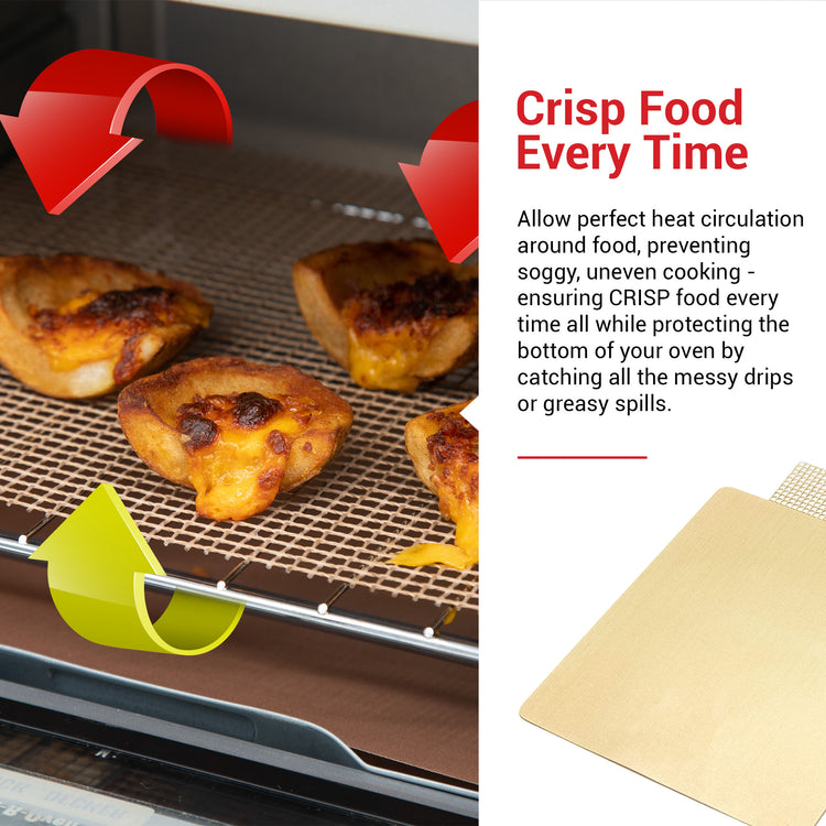 • AVOID FOOD FALLING THROUGH THE RACK: Nothing is more frustrating than having food spill out of the rack and require extra cleanup. To ensure delicious, crispy food while preventing small or delicate dishes from falling through the toaster oven rack, use this crisping sheet with a liner.